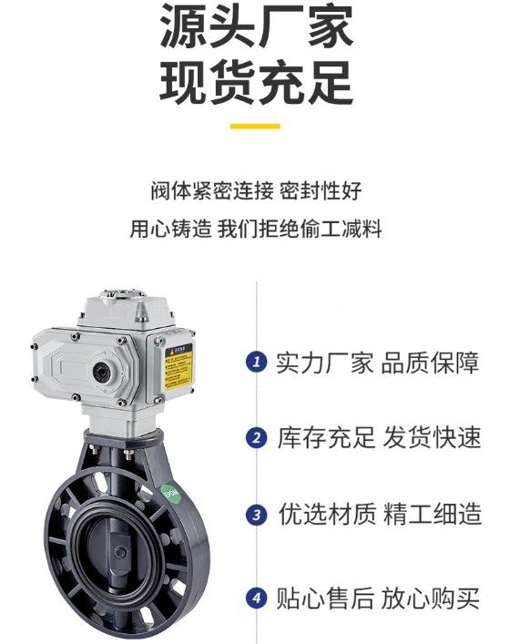 塑料蝶阀(PVC电动蝶阀)重量轻、耐腐蚀性强,被应用于多个领域,如一般纯水和生饮水的管路系统、排水和
