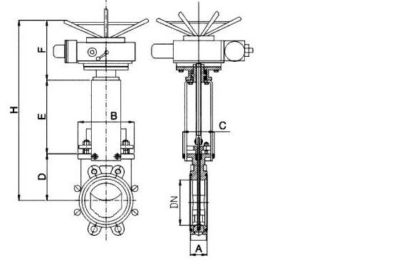 对夹式电动刀闸阀主要外形及连接尺寸(mm)